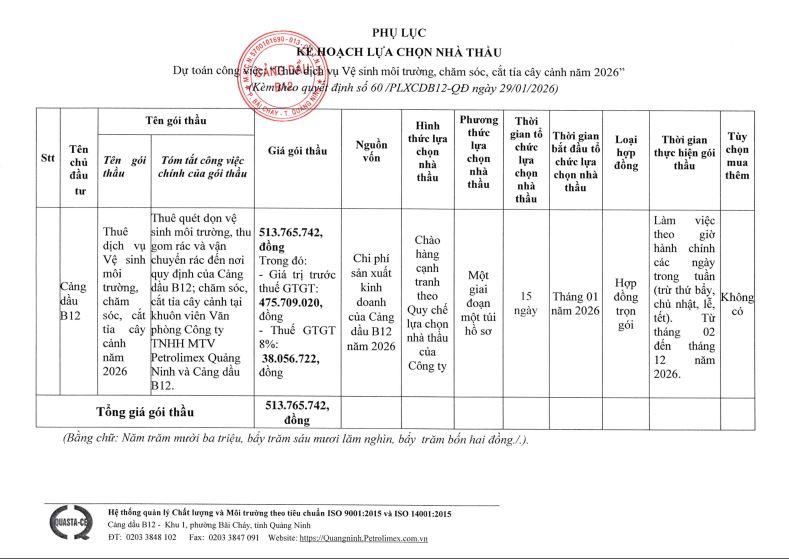 Nguồn: Cảng dầu B12Petrolimex Quảng Ninh
