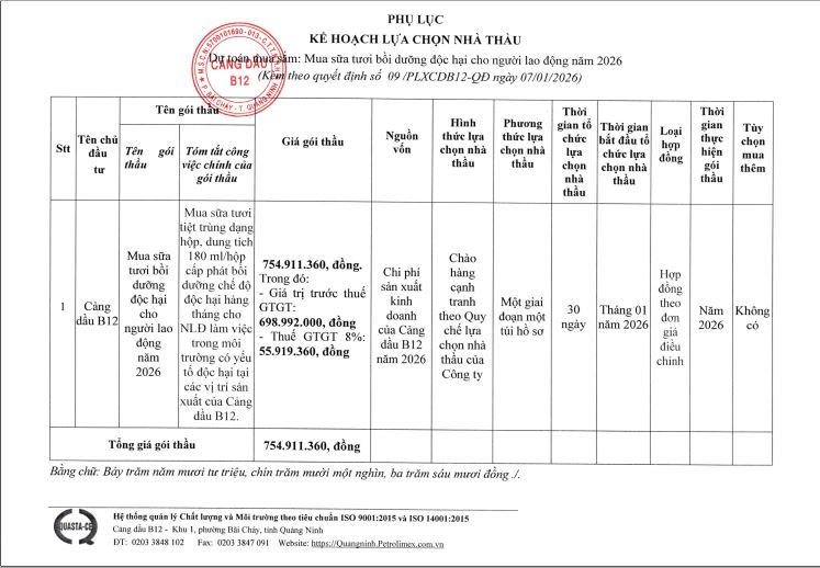 Nguồn: Cảng dầu B12Petrolimex Quảng Ninh