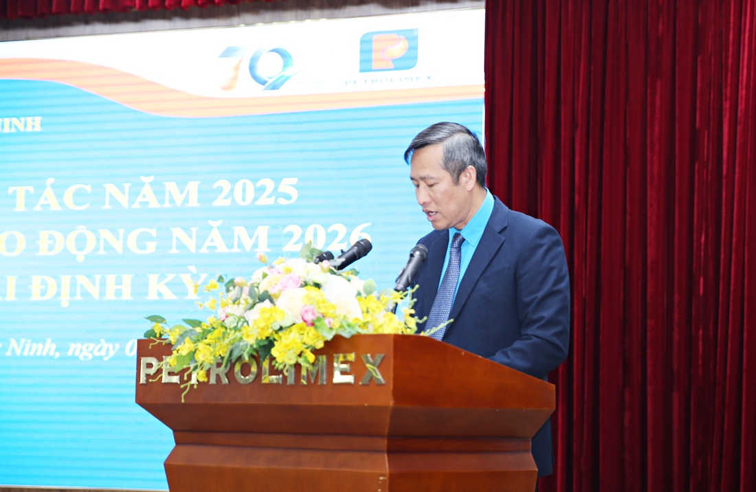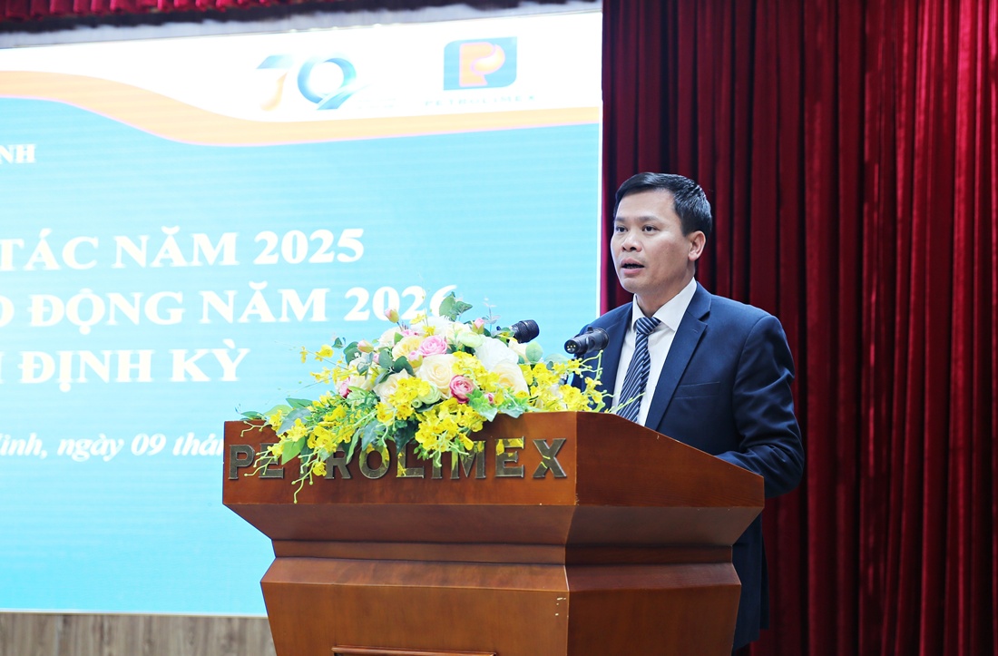 Phát biểu chỉ đạo Hội nghị, ông Lưu Văn Tuyển - Thành viên HĐQT, Tổng giám đốc Tập đoàn Xăng dầu Việt Nam ghi nhận và biểu dương tinh thần nỗ lực vượt khó, phấn đấu hoàn thành các chỉ tiêu, kế hoạch được giao năm 2025 của tập thể Ban lãnh đạo và CBCNV Petrolimex Quảng Ninh; Đồng thời chỉ đạo Công ty tiếp tục đặt lên hàng đầu công tác đảm bảo an toàn tuyệt đối mọi mặt hoạt động SXKD, đảm bảo an ninh trật tự, phòng chống cháy nổ, phòng chống khủng bố, bảo vệ các công trình xăng dầu; Tổ chức triển khai thực hiện kế hoạch năm 2026 bám sát định hướng chỉ đạo của Tập đoàn; Đảm bảo các điều kiện về cơ sở vật chất kỹ thuật, năng lực pha chế...để phục vụ công tác tiếp nhận, tồn chứa, bơm chuyển và cung ứng mặt hàng nhiên liệu mức V, nhiên liệu sinh học theo kế hoạch, lộ trình chuyển đổi của Tập đoàn; Đẩy mạnh công tác thị trường, công tác marketing phát triển khách hàng, thúc đẩy kinh doanh các mặt hàng nhiên liệu mới trên toàn hệ thống CHXD; Tăng cường công tác giám sát và quản trị rủi ro về quản lý và phát hành hoá đơn điện tử tại các CHXD đồng thời kiểm soát chặt chẽ tính pháp lý đối với hoá đơn đầu vào; Thực hiện đầy đủ, kịp thời các chế độ, chính sách liên quan đến việc làm, thu nhập, đảm bảo quyền và lợi ích cho người lao động…