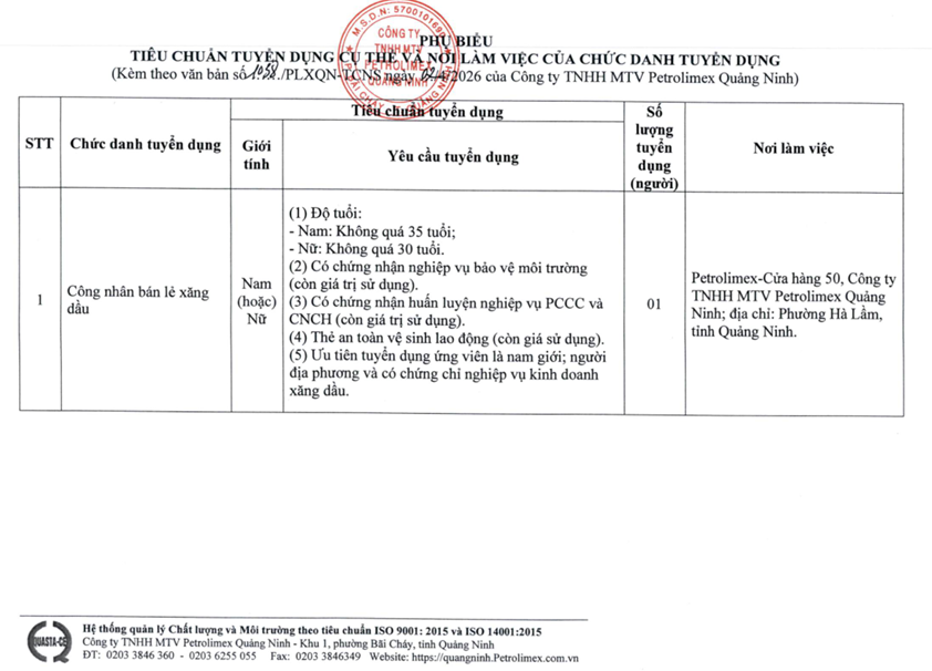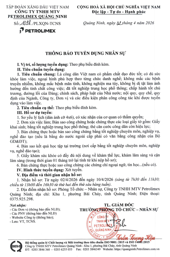 Nguồn: Petrolimex Quảng Ninh